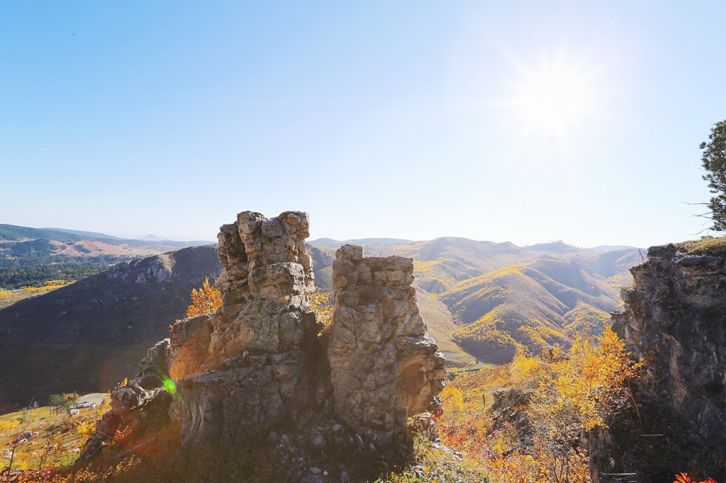 From Bullock’s grave continue on the rocky road as it ascends towards White Rocks. This is the final climb of this hike as the summit of White Rocks sits about .25 mile above Bullock’s grave. There will be many steep spur trails that will take you to the base of White Rocks but staying on the road until it starts to levels out will make the climb to the base much easier. Once at the base of the rocks scramble to the top for amazing views of Deadwood gulch, Terry Peak, Mount Roosevelt, Bear Butte, and the surrounding area.