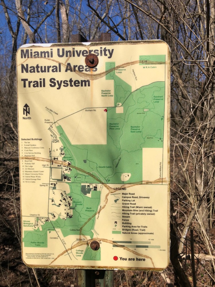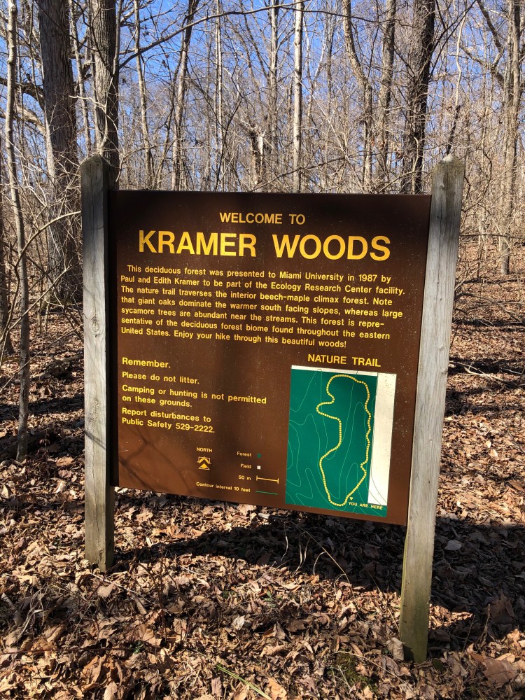 After living in South East Ohio for a little over 6 years we finally decided t0 check out the hiking trails located near Miami University in Oxford, Ohio. Encompassing over 1000 acres and 17 miles of hiking trails the Miami University Natural Areas are comprised of 7 natural areas including, Silvoor Biological Sanctuary, Bachelor Wildlife and Game Reserve, College Woods, Rhinehart Reserve, Kramer Woods, 4 Mile Creek, Western Woods and the Beck Reserve. This past weekend we took advantage of the beautiful March day and headed out to Oxford to check out the Bachelor and Kramer Preserves.