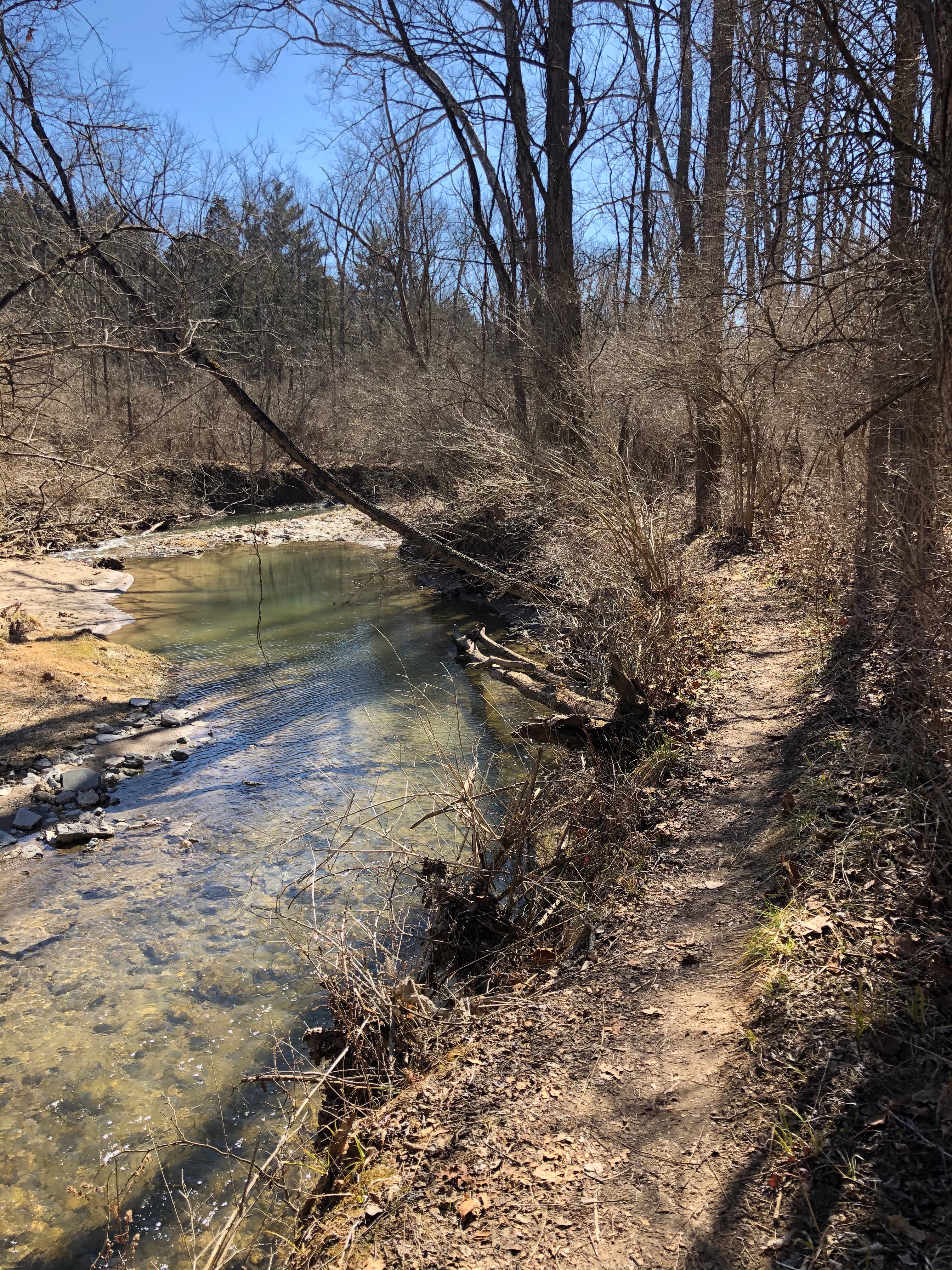 The last half mile of the hike we retrace our steps following the trail along Harkers Run creek back towards the trail head. All Trails rates this hike as moderate, although we didn’t follow the exact same route I would rate this hike as easy. These trails would be a good place for kids and anyone new to hiking. Also with so many different routes it would be easy to accumulate miles within this system so I am not surprised at the the number of trail runners we saw. We will definitely be coming back to explore the rest of these preserves!