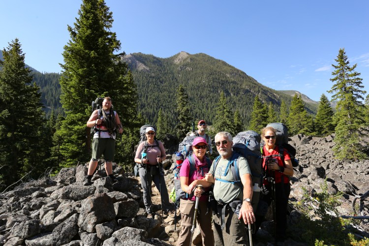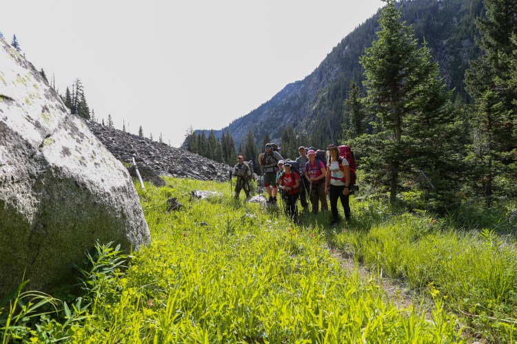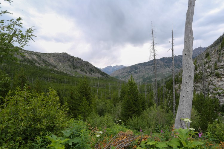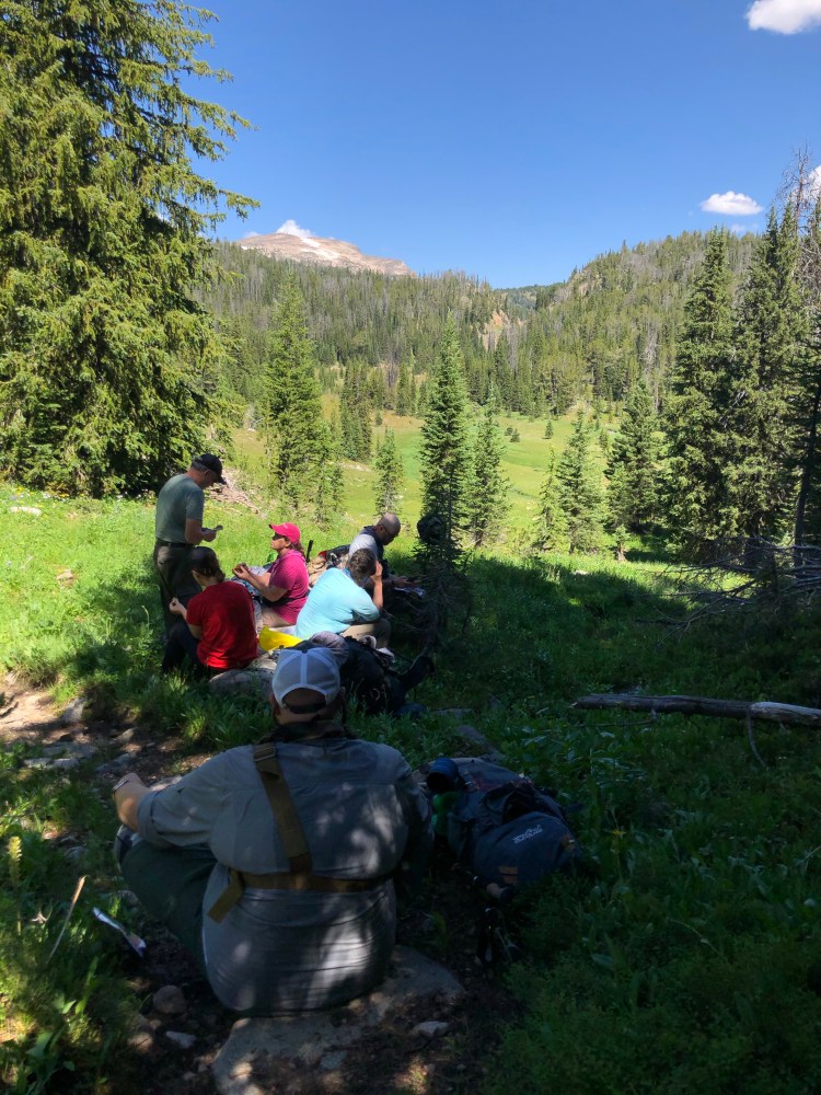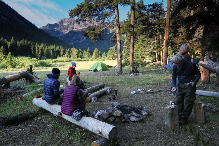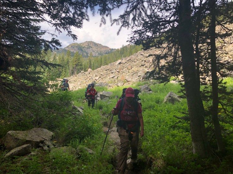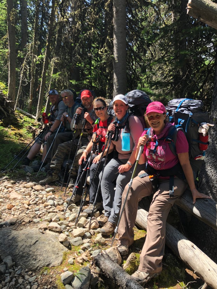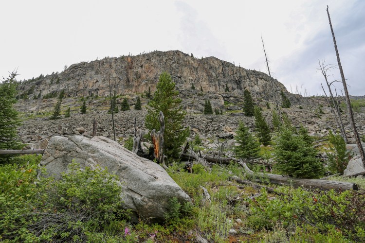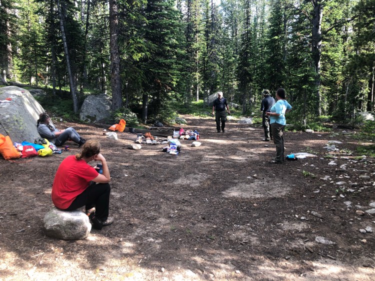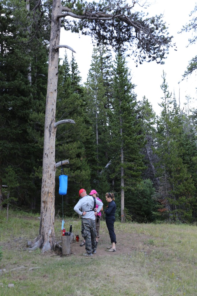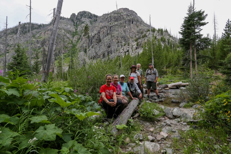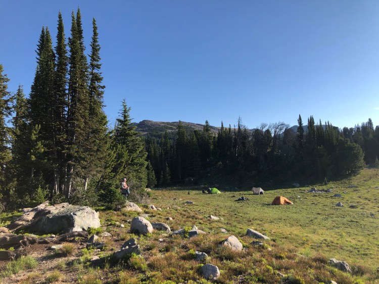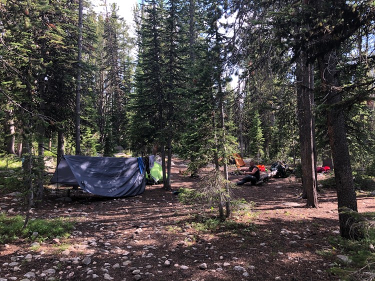 Day 4 begins with sunshine and smiles. This will be our longest day as we will descend almost 3,000 feet over the course of 9 miles. The trail out of Jordan Lake is steep and descends 1000 feet within the first mile. For the next 6 miles the trail takes us through an old burn leaving us exposed to sun for the majority of the day. Hot and tired we finally arrive at the junction of Trail #24, twenty eight miles after we began our trip. Mentally and physically exhausted we are all ready to tap out. The only problem is there is literally nowhere to set up camp. We have two options, stay on course following Trail #24 north along the Stillwater River or detour and head south on Trail #24. We decide to continue north so that in the morning we won’t have to retrace our steps. As we make our way down the trail we begin to second guess our decision. The banks of the Stillwater are marshy and there is very little area that is flat or dry. After 2 long miles we finally come to a little clearing that is just big enough to accomodate all 7 of us.