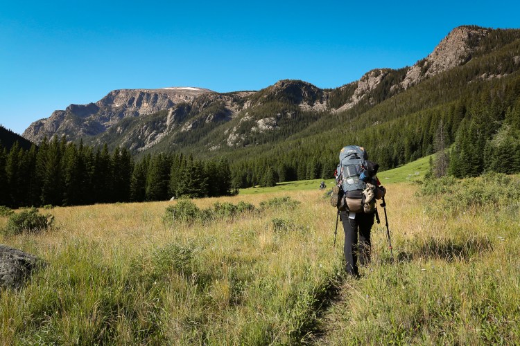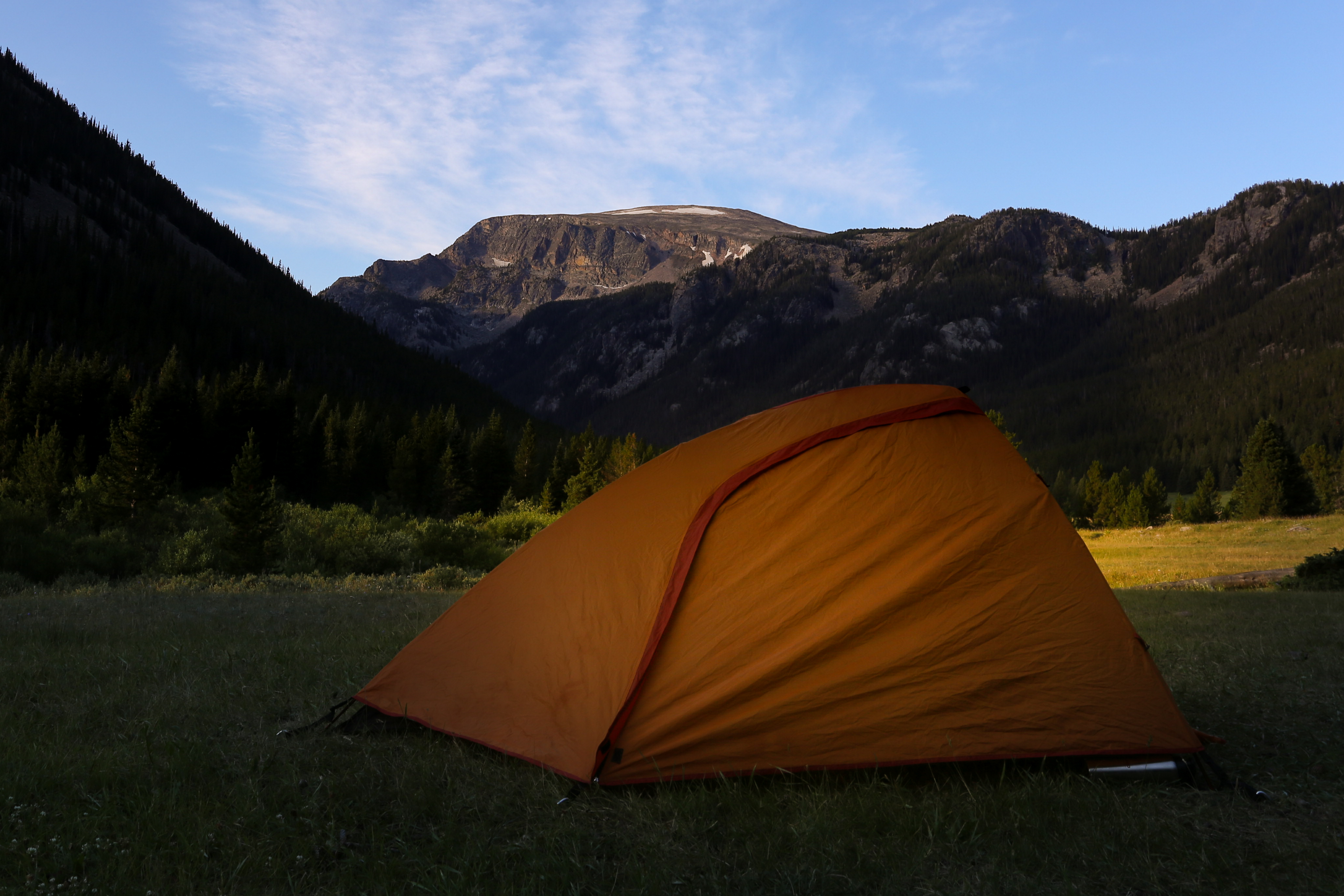 The hike to Breakneck Meadows is relatively easy compared to the rest of this trip, with an average grade of 2% we ascend over 900 feet in 8 miles. The trail follows the West Stillwater drainage most of the way and passes through several smaller meadows before reaching Breakneck Meadows. The day is gorgeous with clear blue skies and very little cloud cover. The area lives up to its remoteness as we do not see any other people the entire day. As we approach Breakneck Meadows we come across some bear scat reminding us all of the locals we will be spending the evening with. We reach Breakneck Meadow with plenty of light left in the day to set up camp, eat dinner and relax.