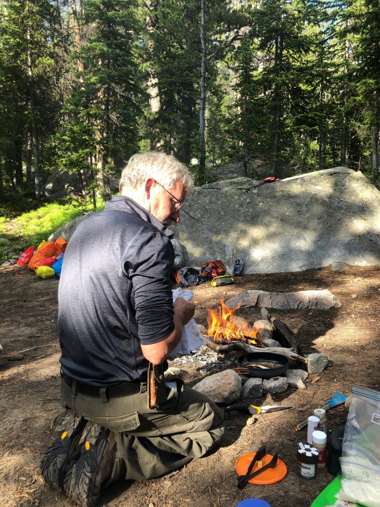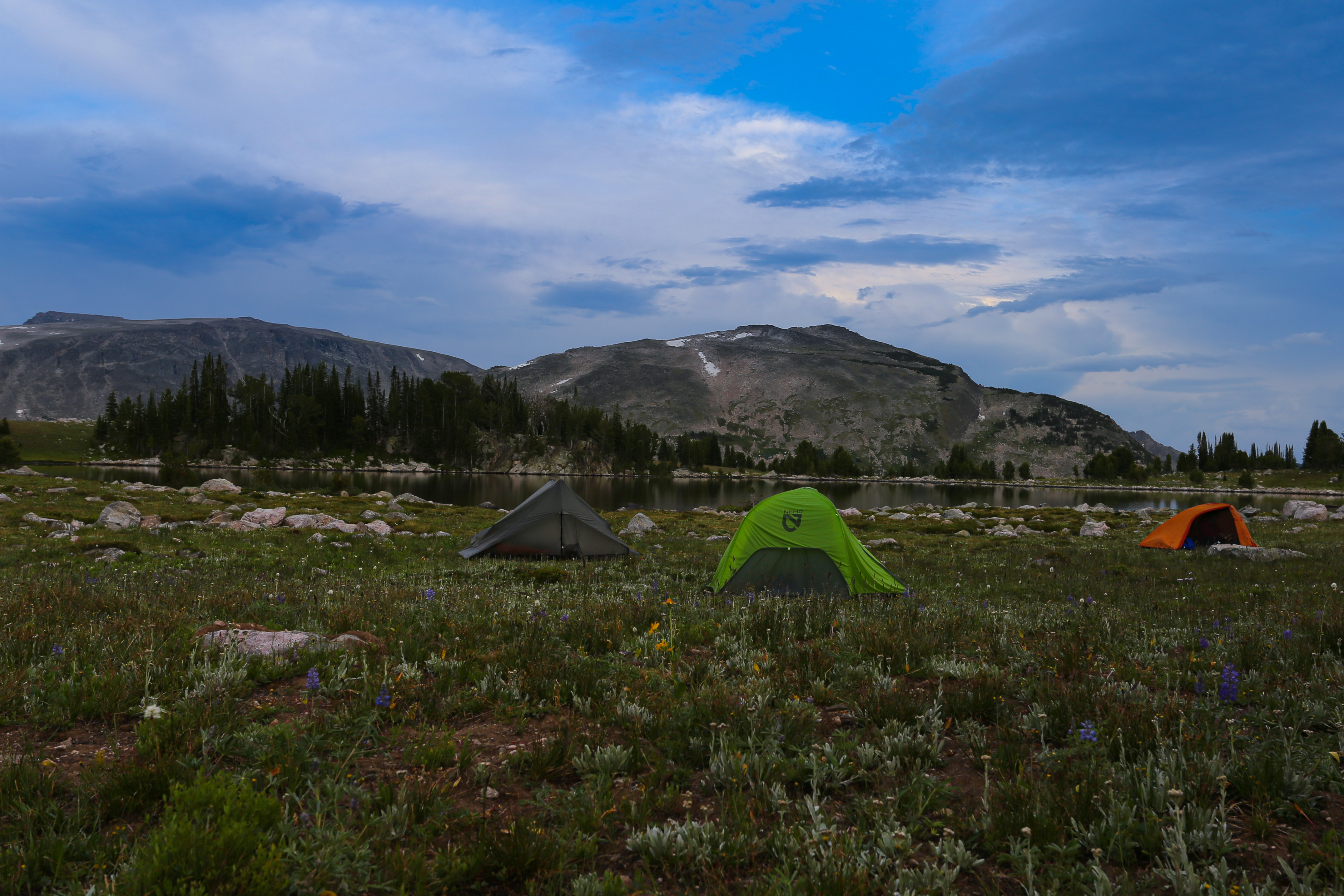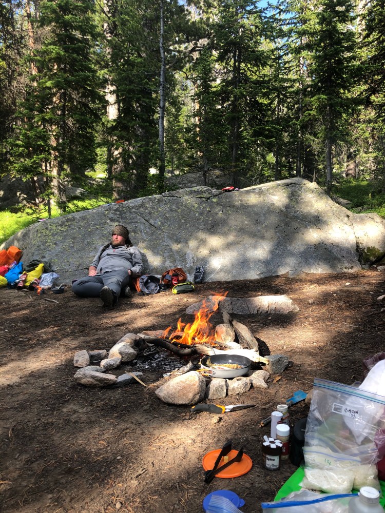 We waste no time setting up camp as a thunderstorm begins to roll in. We cook dinner and retreat to our tents fully prepared to spend the evening hunkered down. Luckily the storm passes quickly and we are able to enjoy a fire and each others company on our last night in the backcountry.
