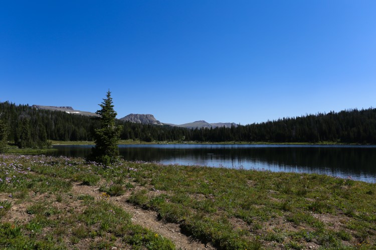 At mile 18 we begin the climb to Jordan Pass. The switchbacks up the pass are narrow and as we climb we meet up with some backcountry horsemen. As we move off trail to let them pass we are greeted by their 3 friendly pups. We continue climbing making our way up the mountain until we reach the pass at 9,380 feet. Jordan Lake is only a short mile and a half from the pass so we press on excited to get to camp and enjoy the remainder of the afternoon.