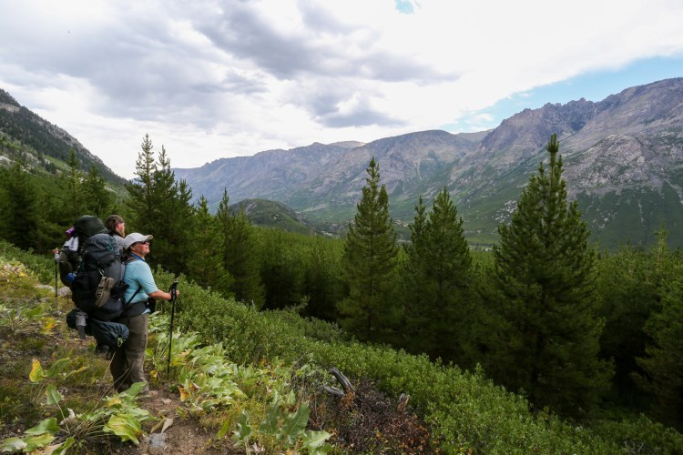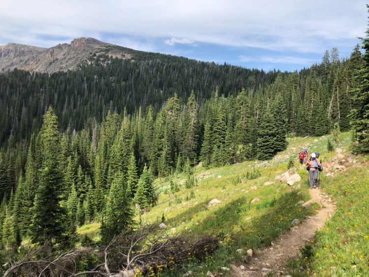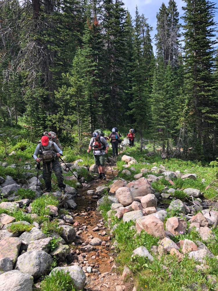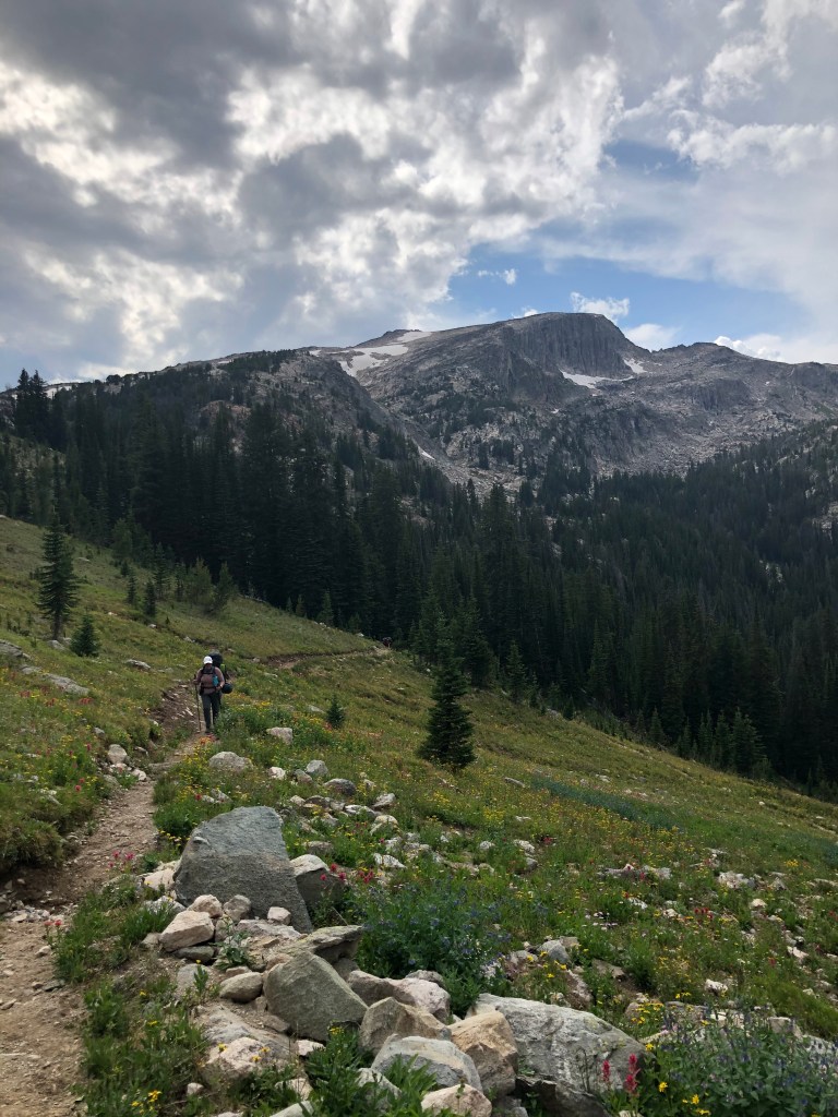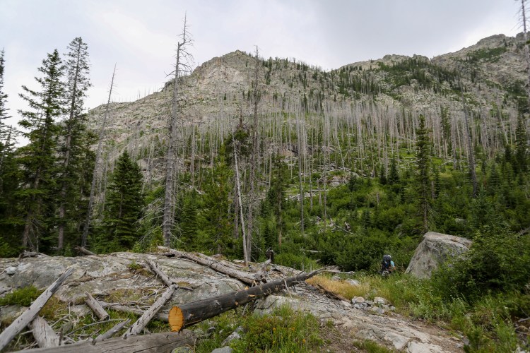 Only a mile from Lake Diaphanous Wounded Man Lake sits in the heart of the popular Lake Plateau. Located between the Boulder and Stilllwater river drainages Lake Plateau is surrounded by gorgeous mountains and has a number of high country lakes to visit. As we continue south making our way to Jordan Pass we cross paths with the first humans of the day. Throughout the day we see 5 more people making it the 2nd most populated day of our trip.