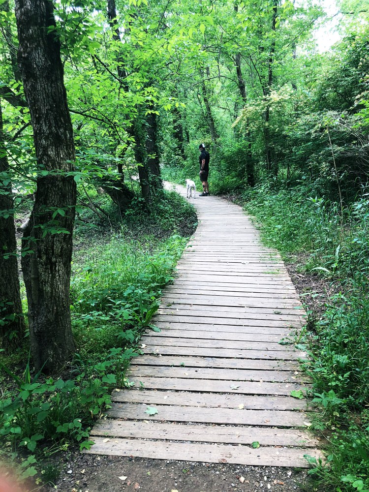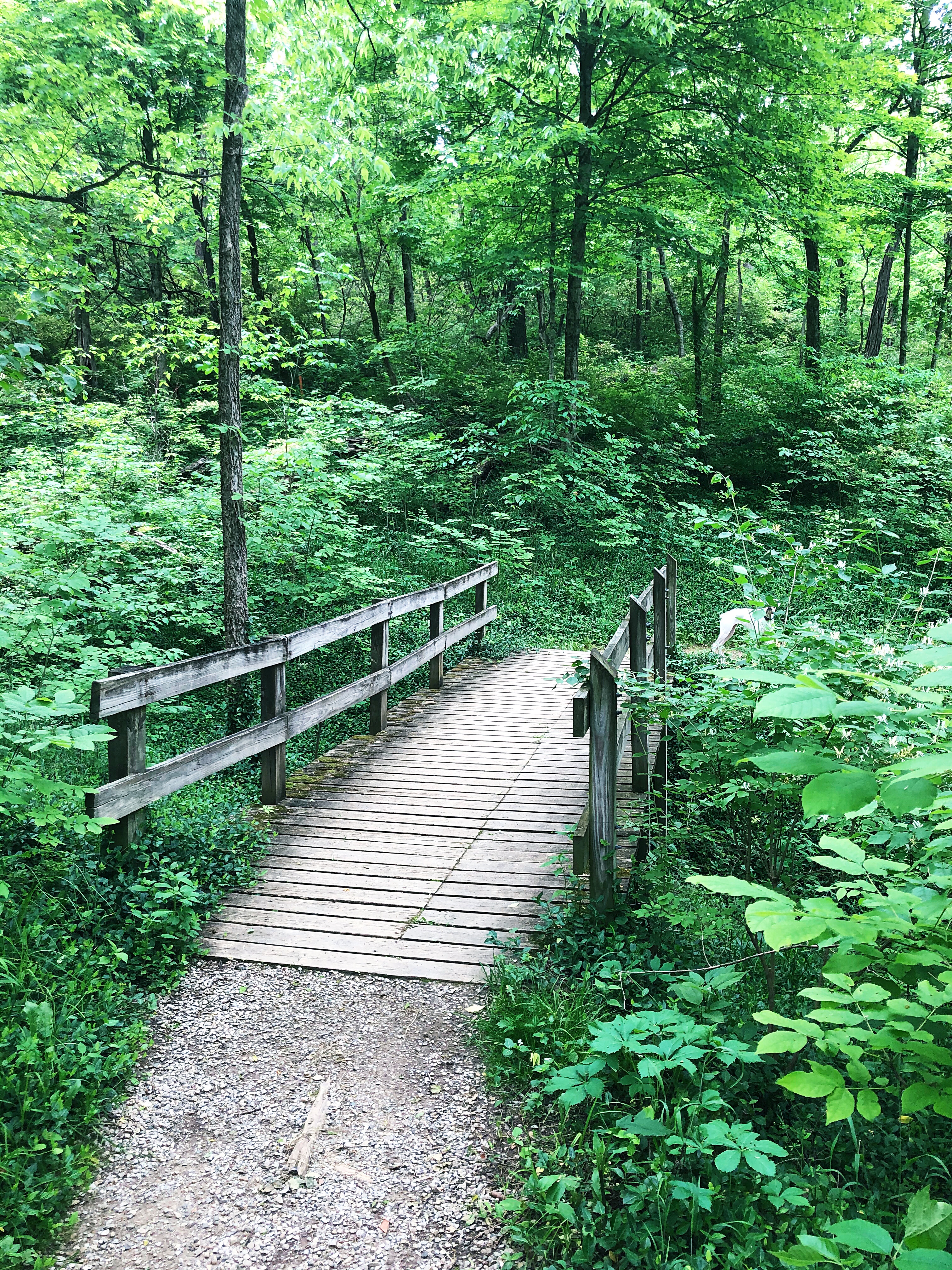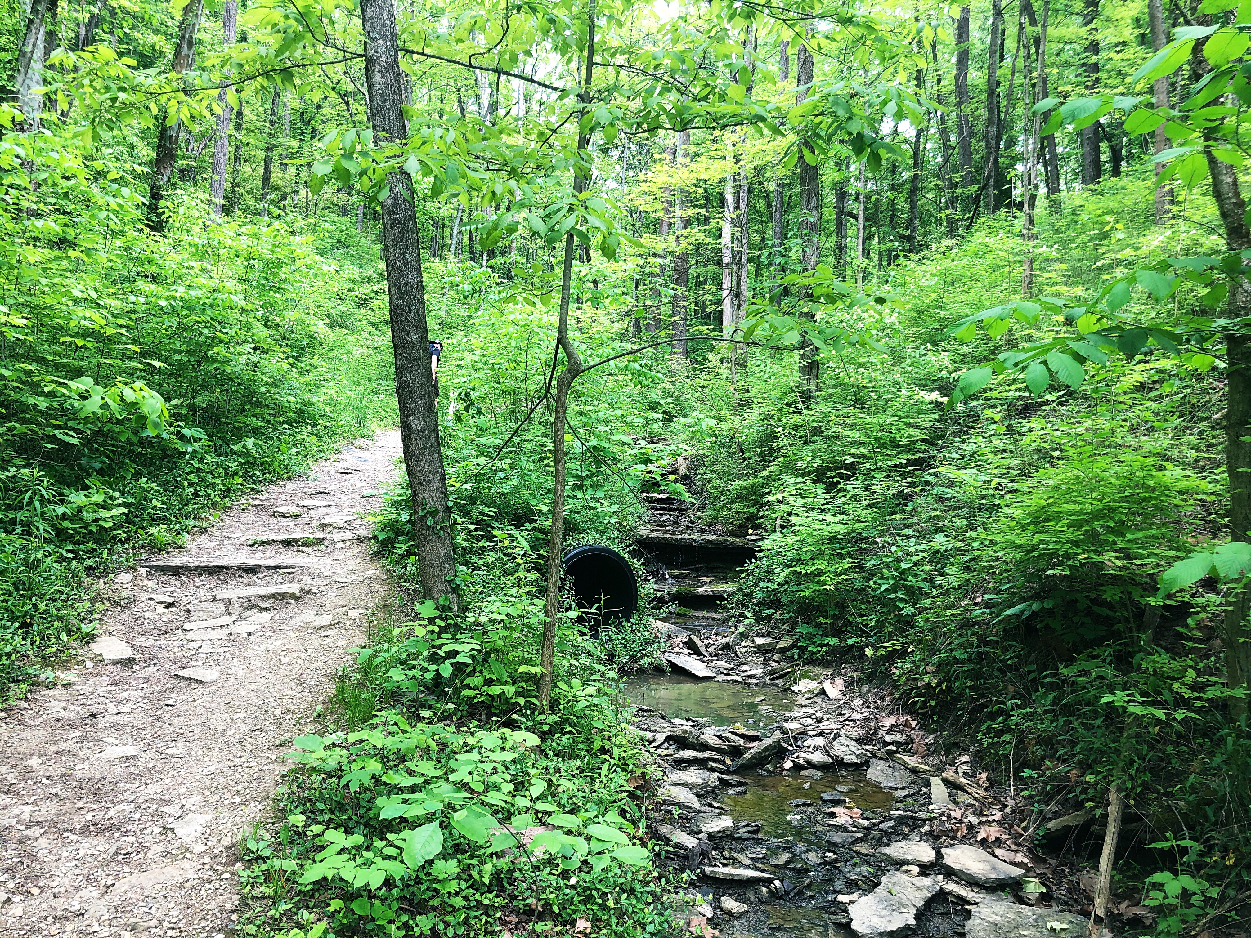 The Kingfisher wetlands is fed by a branch of the West Fort of the Mill Creek. The trail is relatively flat and follows the banks of the creek. The area is home to many species including: ducks, herons, turtles and snakes. At the .50 mile mark the trail turns right heading up a set of rugged stairs, towards the upper woodlands section.