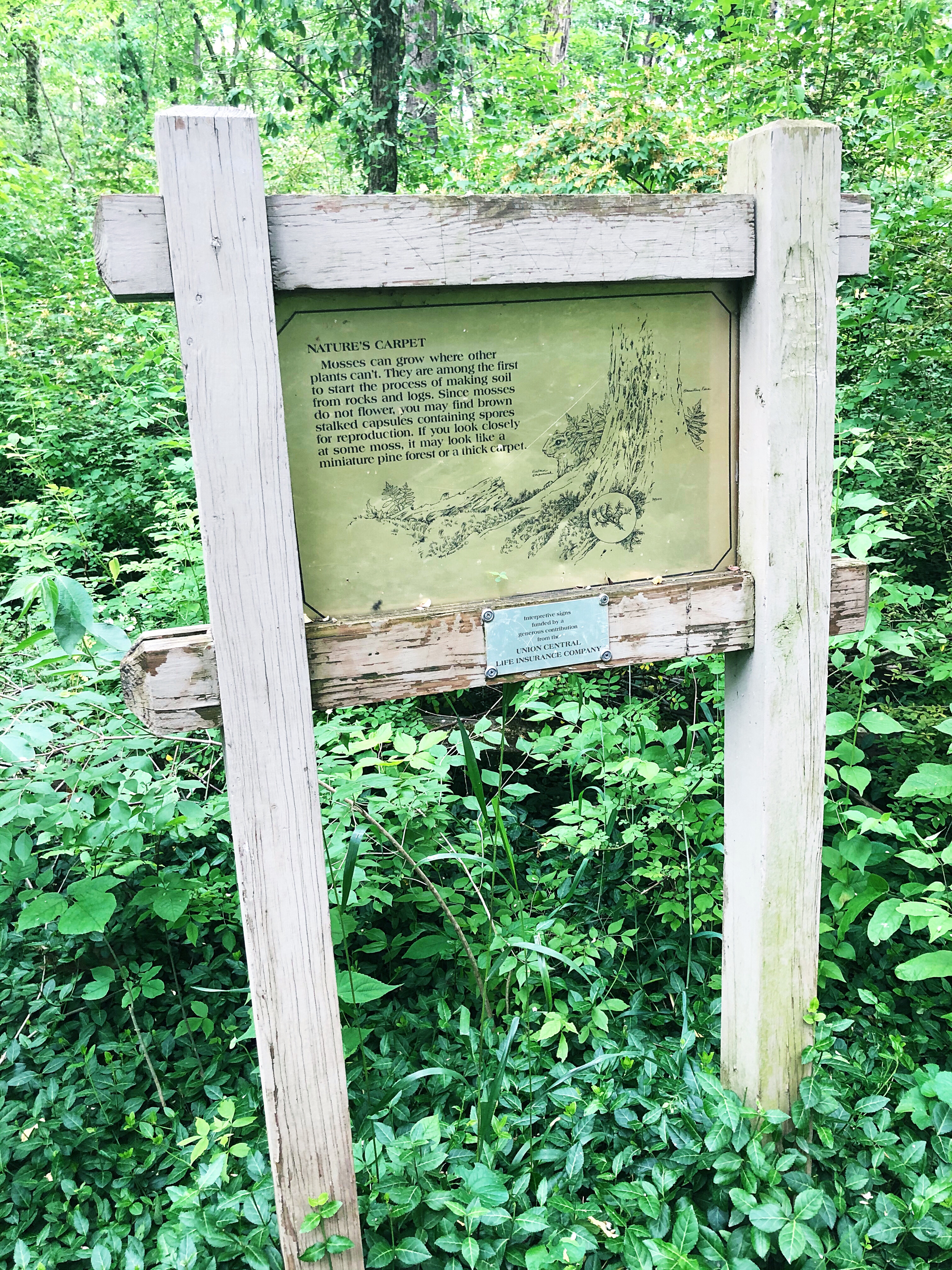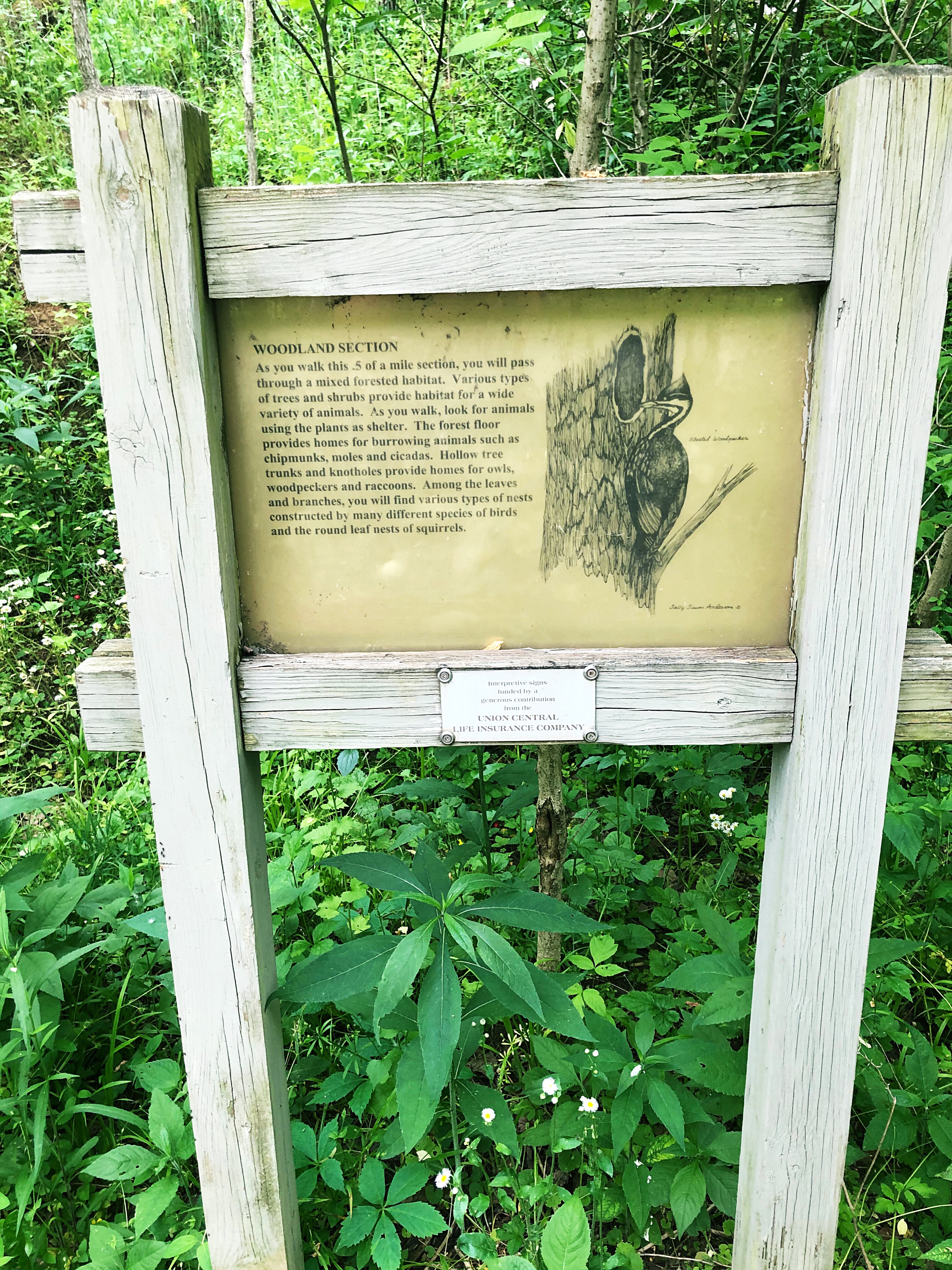 The trail begins in the parking lot of the Kingfisher Shelter, a wide gravel path leads the way to the loop. At the .10 mile mark the trail splits marking the beginning and end of the loop. The loop is divided into two sections; the lower wetland section and the upper woodland section. We turned left heading down into the Kingfisher wetland.