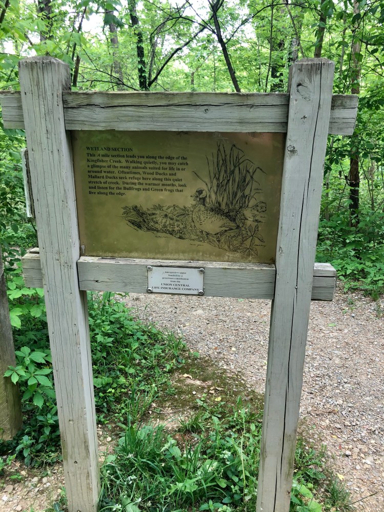 The Kingfisher Trail is a popular hiking trail in Winton Woods, a 2,555 acre park located in Springfield Township, Ohio. Once known as West Fork Lake, the park was renamed Winton Woods in 1939. The name change paid homage to the historical Winton Road, constructed in 1798 as part of a military road, this route was once a pathway for American Indians. The Kingfisher Trail is a 1.1 mile loop that follows the east bank of Kingfisher Wetland before climbing to the northeast where it passes through a portion of the Greenbelt area, a state dedicated nature preserve.