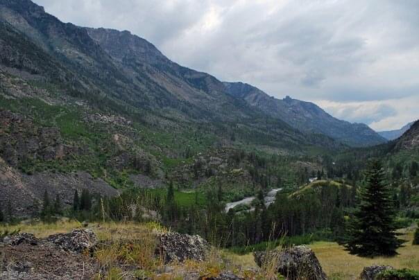 Sioux Charley Lake is not really a lake at all but just a section of the river that is so still it could be mistaken as a lake. The high country meadow where we stand offers a spectacular view of Sioux Charley Lake, which is back dropped by a towering rocky ridge speckled green with coniferous trees. The Stillwater River widens into the valley of this ridge creating a lush landscaper which seems to be the perfect setting to spot a moose. As we continue along the trail I am starting to feel a connection with my Dad that I wasn’t sure we could reclaim. Like finding the lost piece to a puzzle that was hiding in the most obvious place, something about the fresh air, the beauty of the mountains and the joy filling us both is rekindling our father daughter bond. Three miles into the hike we arrive at Sioux Charley Lake, although we do not stay long because we still have another three miles to go before reaching Cathedral Point.